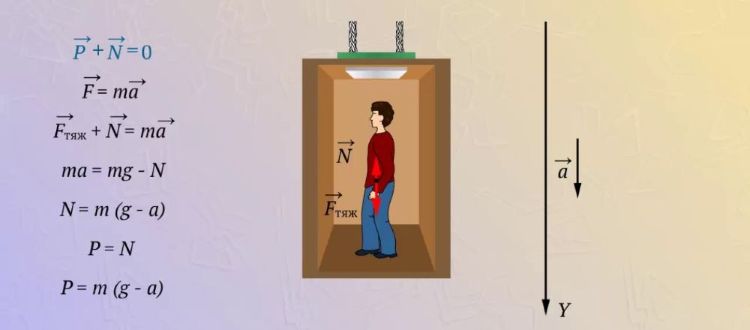 т.е. вес при движении по вертикали с ускорением будет меньше силы тяжести.